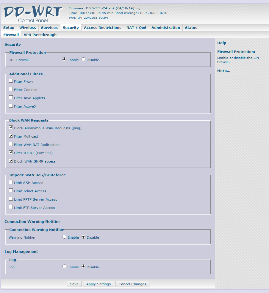 - If you are having trouble with high temperature (visible in Status > Router) turn down CPU frequency in Administration > Management.